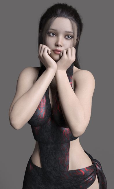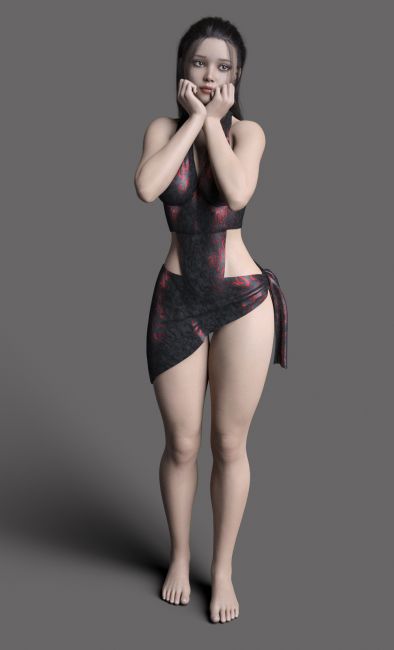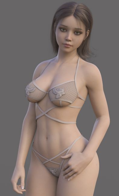 The hips are medium to wide, creating a distinctly feminine silhouette. The curve of the hips flows smoothly from the waist to the thighs, creating balanced and harmonious body proportions.