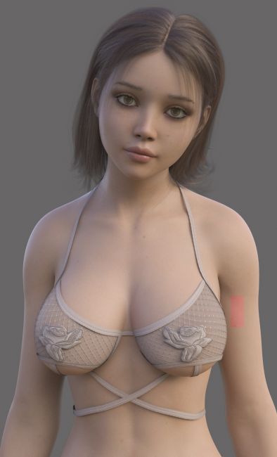 The breasts appear full and round, with a balanced volume between the left and right sides. The shape tends to be natural, with soft contours and a realistic sense of gravity. The transition from the chest to the abdomen area is smooth, without sharp angles.