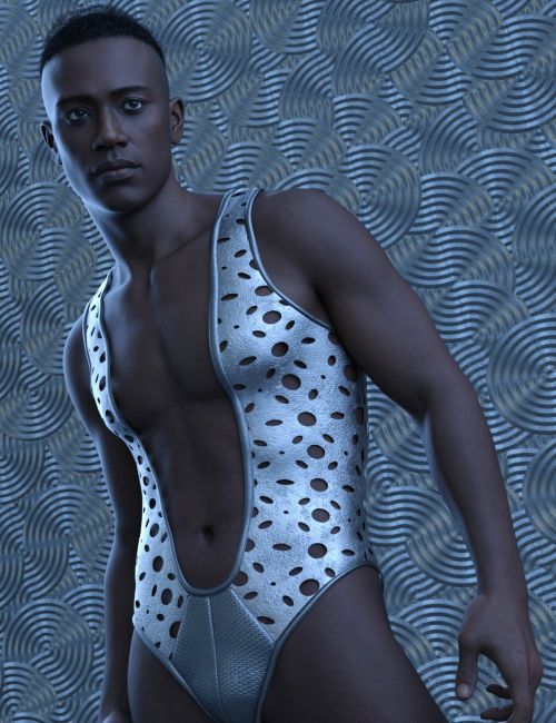 The Majesty Mesh outfit for Genesis 9 Males and Females features a daring, high-cut bodysuit design with a deep scoop neckline and intricate mesh pattern for a modern, edgy look.