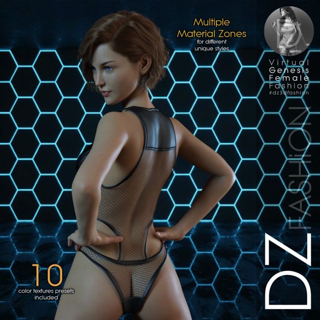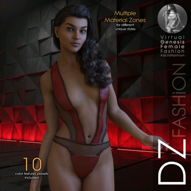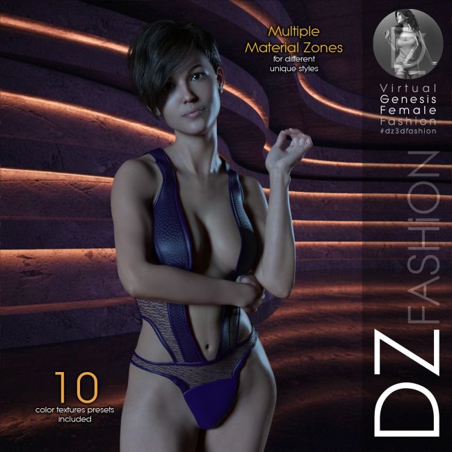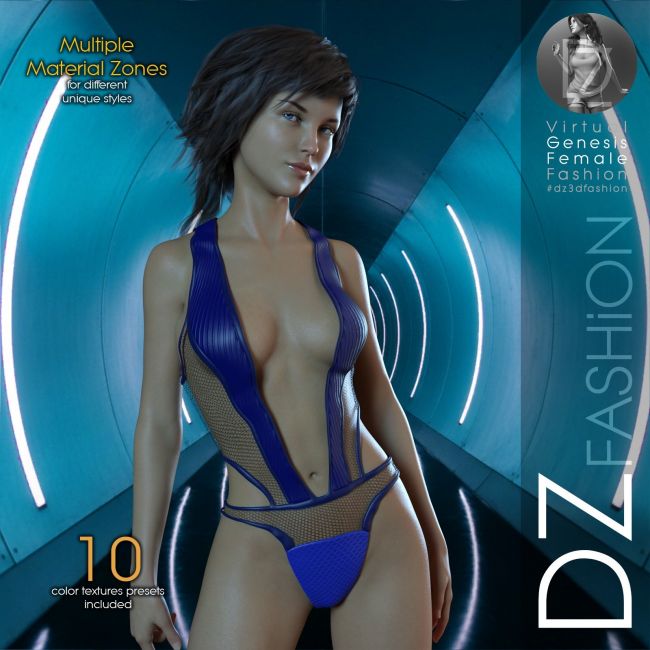 Get ready for a bold look with SkimpZ 8. This contemporary high-cut bodysuit features a deep plunge design and intricate mesh paneling, perfect for sci-fi, fashion, or beach scenes. The outfit is designed with multiple material zones, allowing you to mix and match textures for a truly unique style. This set includes 10 color texture presets and built-in adjustment morphs to ensure a perfect fit on a variety of character body shapes.