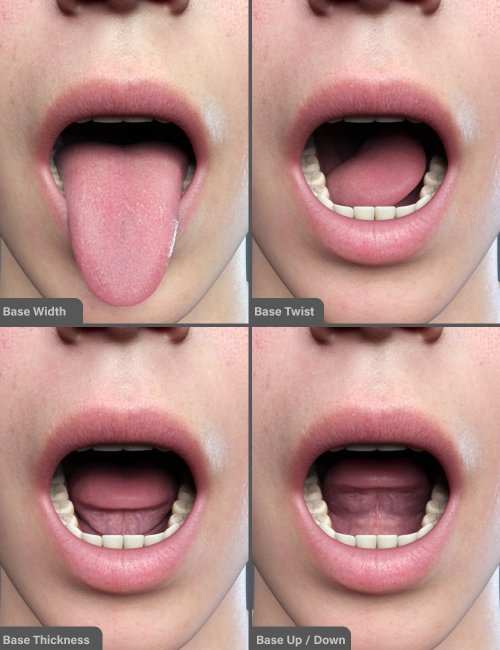 Make the tongue longer, make it extra floppy or curly, adjust the thickness and width, curve it, or adjust its shape. There are almost endless possibilities. Included are separate controls for the tongue, tongue base, and tongue tip for the most flexibility possible.