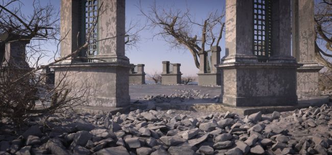 This beautiful and captivating abandoned scenery features a temple in ruins.