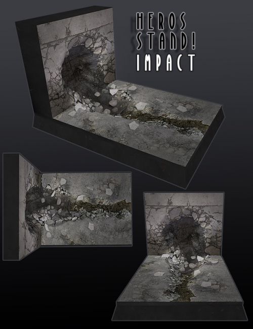 Every Hero needs a little help now and then, and we have their backs. They may be smashed into a wall, but we've still got them covered. Hero's Stand is an environment set that comes with the impact base, add-on re-bar prop, rocks and broken tile props.