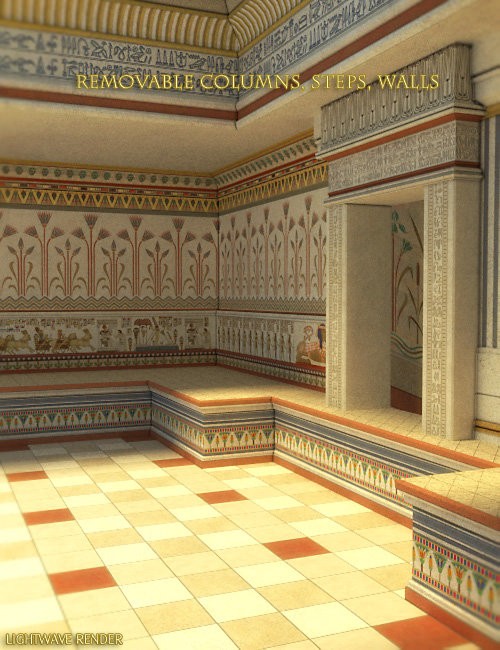 The Temple of the Pharaohs is an authentic Egyptian interior featuring removable walls, columns, steps and center ceiling section. This transforms the open temple into an enclosed room suitable for interior scenes.