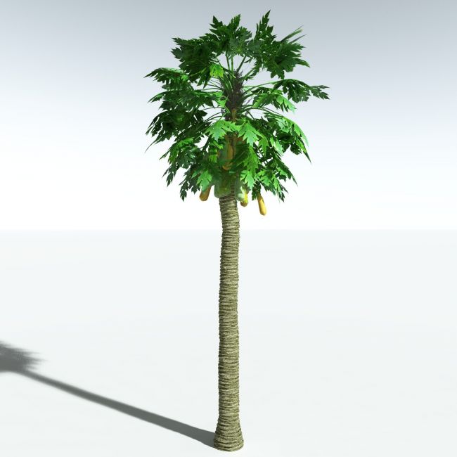 Notes: A small, sparsely branched tree, usually with a single stem growing from 5 to 10m, with spirally arranged leaves confined to the top of the trunk. The lower trunk is conspicuously scarred where leaves and fruit were borne. All plant parts contain latex in articulated laticifers. Native to tropical America, papaya originates from southern Mexico and Central America. Papaya cultivation is now nearly pantropical, spanning Hawaii, central Africa, India, and Australia. In the wild, it is widely distributed throughout tropical and warm sub-tropical regions.