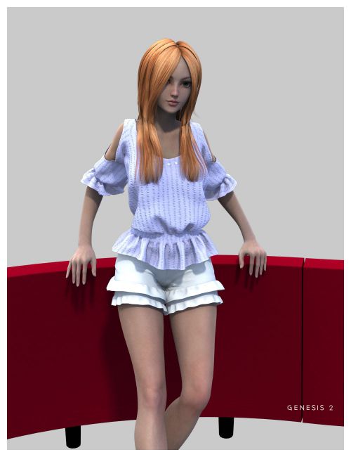 A young, playful shirt and shorts outfit for Genesis 2 Female(s).