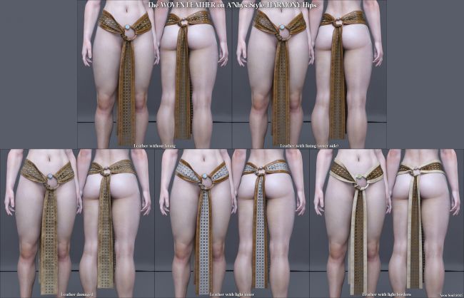- Woven: an intricate leather style with studded side bands of leather. Easily recolor the lighter version for a better matching with other clothing pieces!