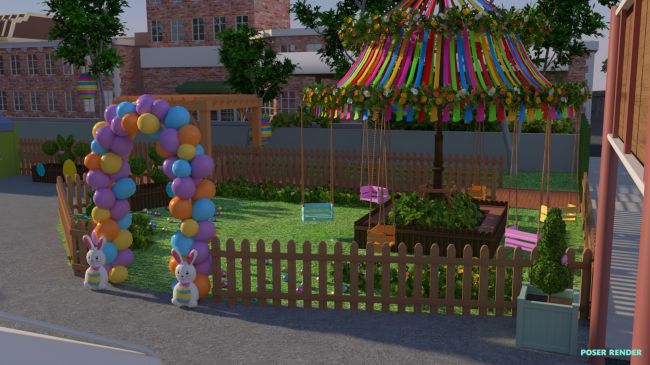 Rearrange and redecorate the Farmers Market with the themed Easter addon!