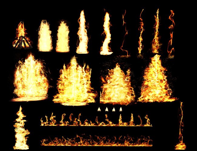 SickleYield brings you more great flame effects for Iray, now with bones! Fast Flames Iray II brings you 20 unique flame props with bones for movement, plus blue and green versions AND a campfire with 3D logs for greater realism. There are 4 different rigged small candle flames included so you can fill your candelabras or votive sets with non-identical flames that can move in the wind or air currents when you pose them. Set fire to your scenes today!