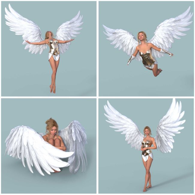The set comes with 20 base poses that include wing poses for FD Angel Wings, plus mirrors and body-only poses for any Genesis 9 character, making them flexible to use in a variety of scenes.