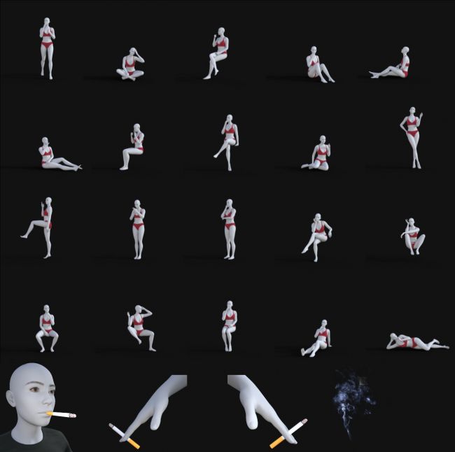 20 casual smoking poses, included cigarette smart prop for mouth and both hands, everyday actions and sexy poses both included.