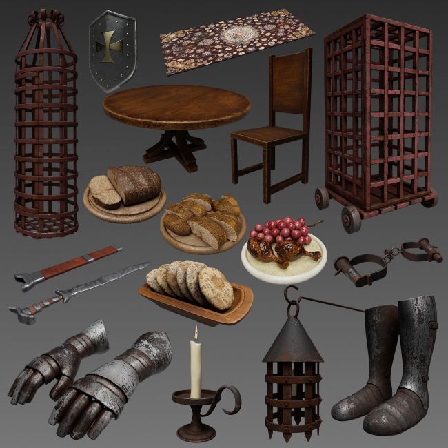 76 Gothic Props full of detail. This massive prop set includes weapons, furniture, food, and more!
