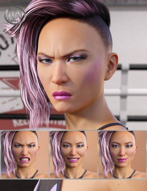 With Fighter Expressions, you choose the best face for each situation and express what you want. Fighter - Expressions for Genesis 8 Female and Kayo 8 contains 40 detailed and realistic expressions divided into Angry, Happy, Sad, and Surprised categories.