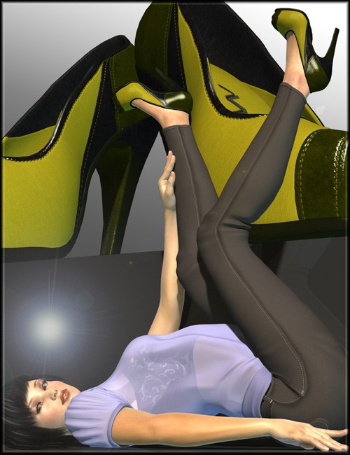 The Genesis Women are stepping out in style in this fashionable platform open toed Pump. It comes in nine spectacular color and cloth combinations complete with detailed specular and displacement maps, and is hand sculpted to fit all of the Genesis Ladies perfectly. Also included is a custom High Heel foot morph specifically for Genesis to subtly contour her feet for the best effect in high heel shoes.