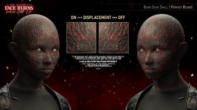 Please note that only textures are included in this package. While this product works best in conjunction with the base product, as the morphs add depth to the carbonized texture, the textures here can still be effective on their own. Therefore, the base product is not strictly required.