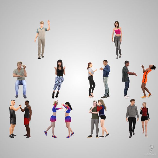 This pack contains 10 people billboard props, each with 17 angles so you can find one that suits your render. The billboards were rendered at 2k with even lighting so they should fit well into any scene.