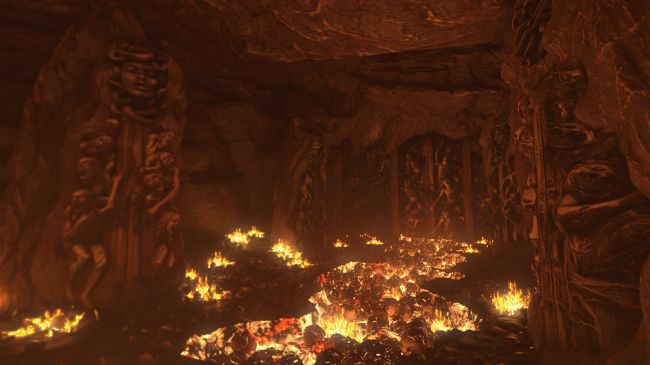 Deep beneath the Earth lies the Gates of Hell, a vast, cursed cavern where the path is cracked with flowing lava and each step of the pathway is made from the skulls of the damned.