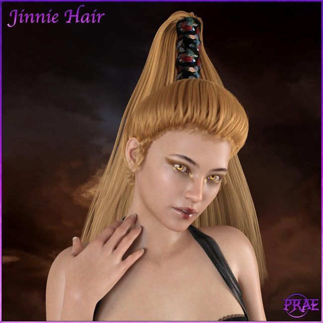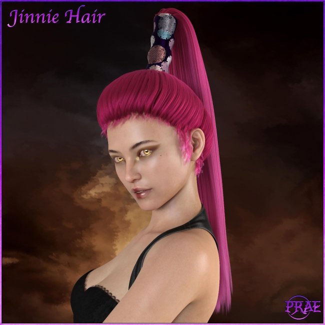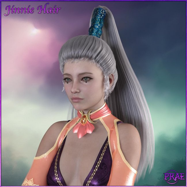 Jinnie Hair is a straight pony tail with a long tail cuff, it comes with 24 colourful hair textures and 6 Tail Cuff textures for Iray. This product is Iray only. There is a Genesis 8 Female/Genesis 8.1 Female and Genesis 9 version of the hair. It can also be made to fit more characters with the use of Auto Fit and the supplied Adjustment morphs.