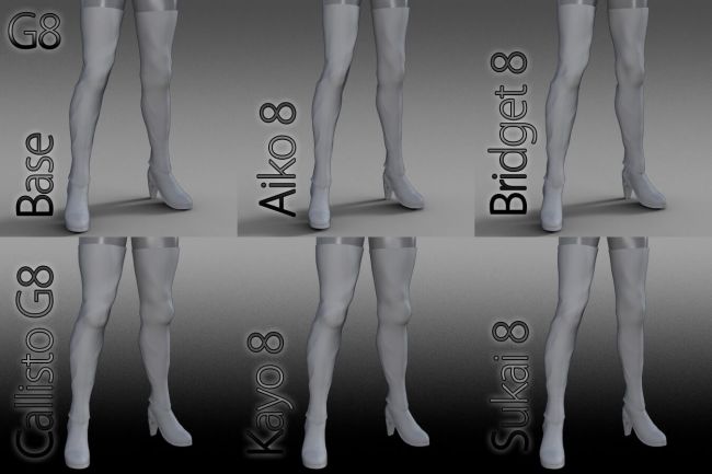 Hijiri Boots is a high heels and leg warmers combo pair, each with 4 texture variants, for both Genesis 8 female models and Genesis 9 models.