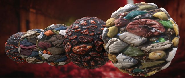 This collection contains an array of unpleasant materials, including skin, gore, puss, dirt, moldy food, trash and more. There is also an array of utility options to help you with displacement and tiling.