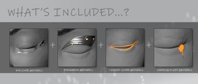 This Geoshell preset collection builds science fiction-themed eyeshadows on top of your library's already existing characters.