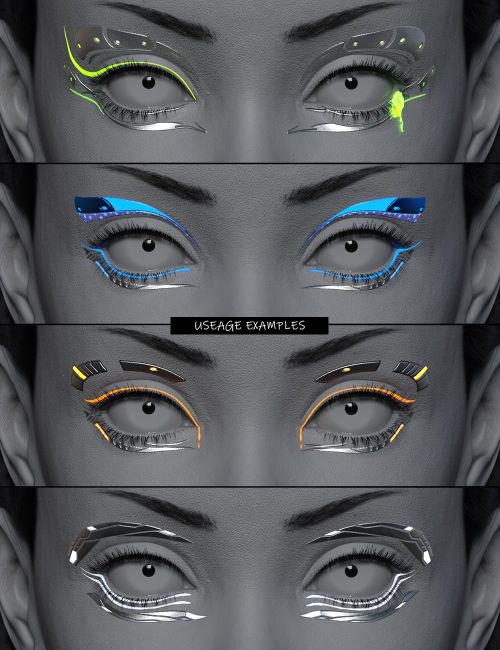 Instill robotic, science fiction details into your renders with Irregular Sci Fi Eyeshadow Builder for Genesis 9!