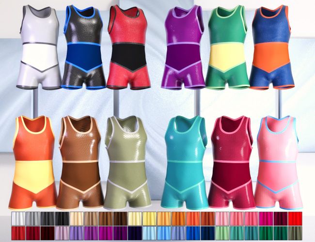 The colors of the materials can be combined using color shaders to get many different bodysuit colors.