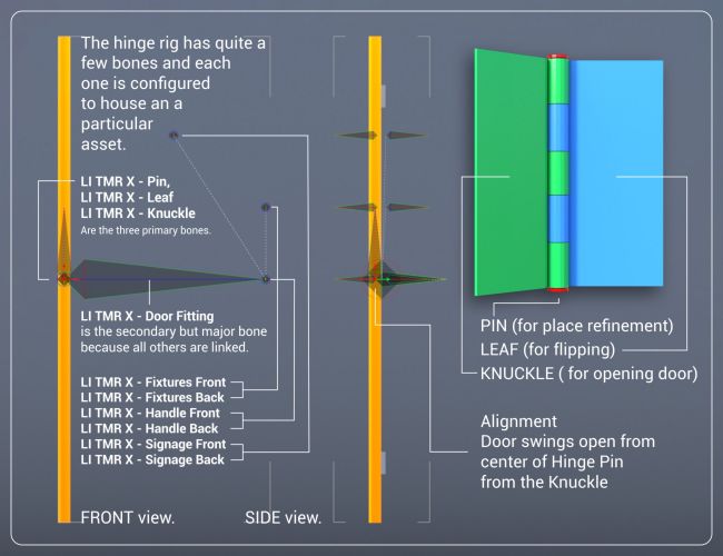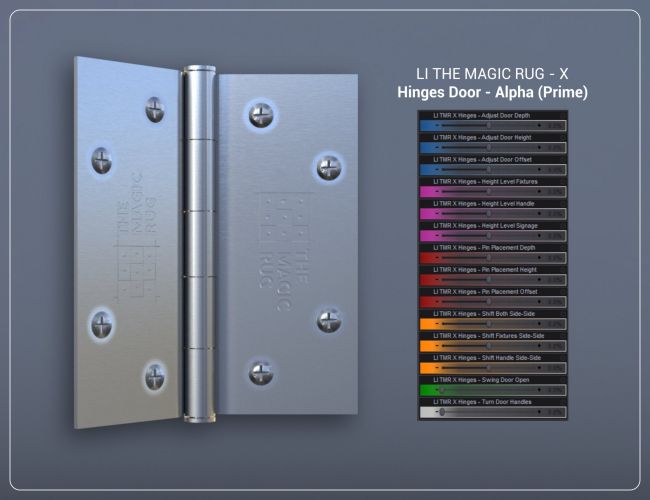 LI The Magic Rug - Doors & Hinges Universal 01 is quite complex but offers an extremerly flexible approach to doorway customization with bone names and control sliders that will help you refine any attachement.
