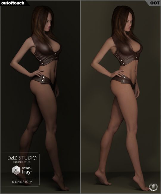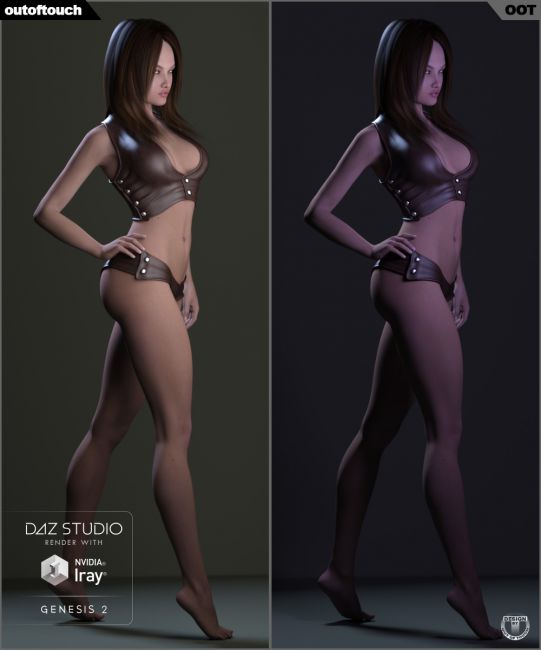 Shown promotional renders are 100 % DAZ Studio 4.8 Iray renders without postwork. Used figure is Genesis 2 Female with Lilith bodymorph and Bree character using the "Iray Optimized Genesis 2 Female MAT" and different OOT clothing and hair.