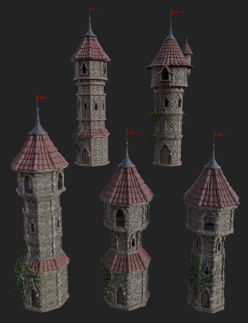 A collection of 5 more mystical, stone wizards towers, shrouded in mystery and hidden menace.
