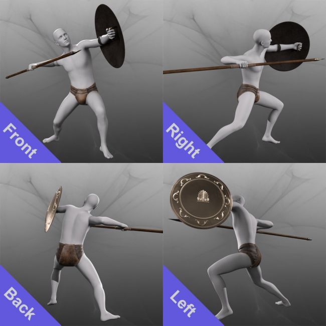 The Greek Warriors Bundle includes the armor of the legendary Hoplites, an armor texture pack, a blood, dirt and scratches LIEs pack and a set of warrior poses for your ancient time scenes.