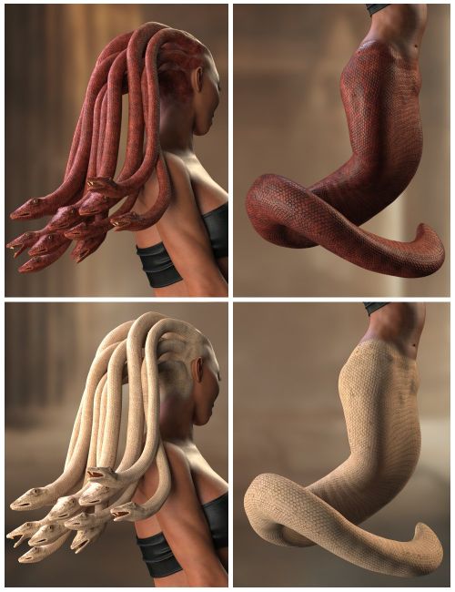 Medusae comes with High Definition morphs, Ultra Realistic textures, and Snake Head and Tail Geografts to enhance their reality.
