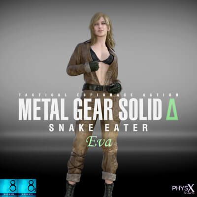 Metal Gear Solid Delta: Snake Eater - Eva G8f & G8.1 is packed with a custom in game body shape that is extremely close to the original body, and skin. All clothing and hair is converted to a subdivided mesh. The subdivision is not enabled automatically. You can go to the mesh resolution and increase the subdivision to gain even better functionality. You can also add a smooth modifier to your liking.