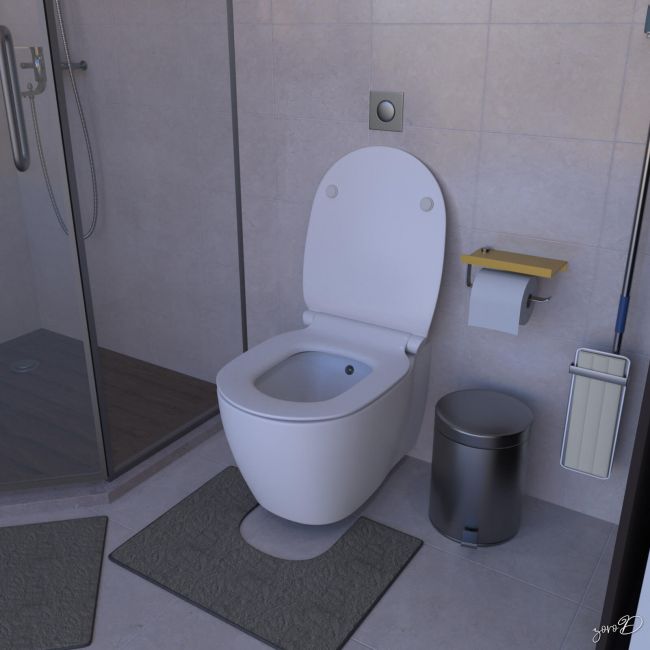 The model has all basic components "toilet , shower-booth , basin , mirrors , ……. etc". The scene comes full with its materials & textures, Iray ready, & comes with a couple of few options.