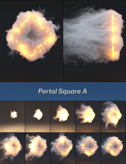 This set contains 150 VDB portals in 15 sequences. The portals come in 3 shapes: round, square, and triangular. For each shape, there are 5 different portal types. Portals A, B, and C all have the gravitational forces of the portal drawn in and back simultaneously. Portal type D has the gravitational force drawn towards the center only, and portal type E has the gravitational force pushing away from the portal center.