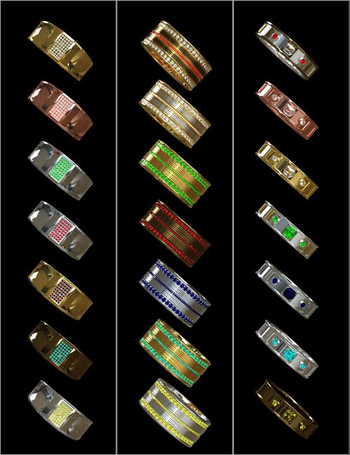 - 42 Hierarchical Presets (7 for each ring) with different combinations of metals and gemstone colors as shown in the promotional product images
