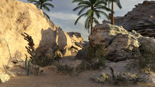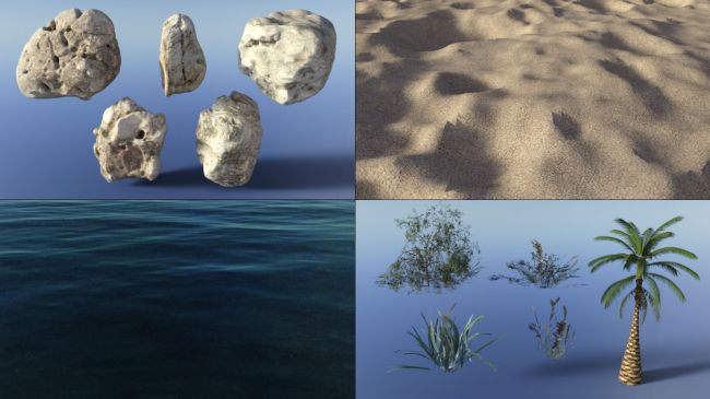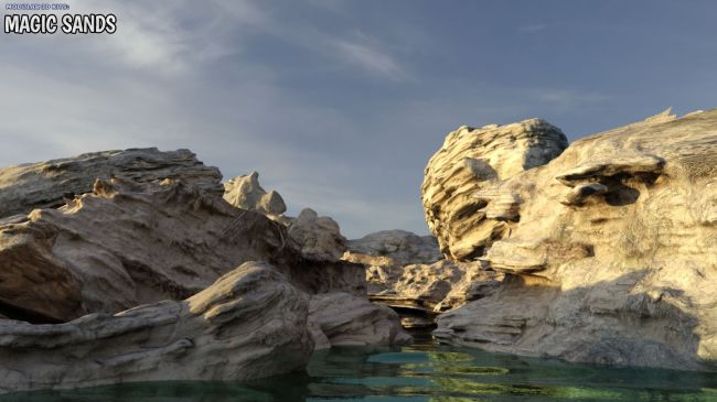 Enjoy a 30-piece photoscanned magic nature set, with cliffs, rocks, plants and water. Perfect for fantasy, scifi, or maybe just a romantic getaway. You get 7 cliff pieces, 4 rock pieces, 5 full rocks (adjusted tectures from Desert Rocks and Crag Rocks products) 4 morphing palmtrees and foliage props from Baseplants (compatible with other baseplant materials), an ocean plant and a super landscape.