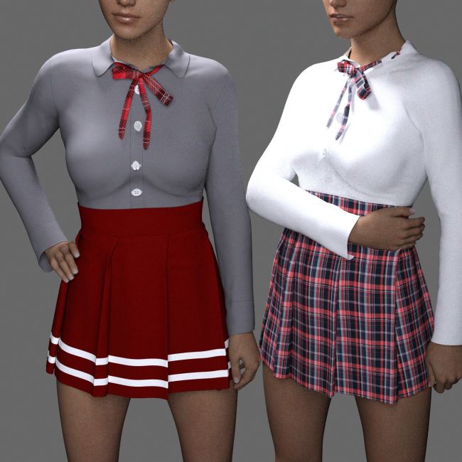 Add a classic and elegant touch to your content with the MS High School Uniform, a detailed school outfit designed for Genesis 8 Female and Genesis 9. This complete set includes a pleated skirt, long-sleeve shirt, and a female necktie, carefully modeled to deliver realism and versatility for a wide range of scenes. With full dForce support, the outfit offers realistic cloth simulation for natural movement, making it ideal for animations, dynamic poses, and lifelike renders.