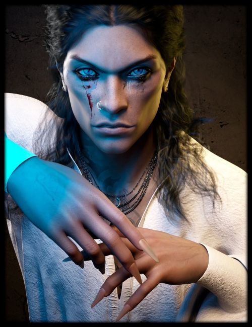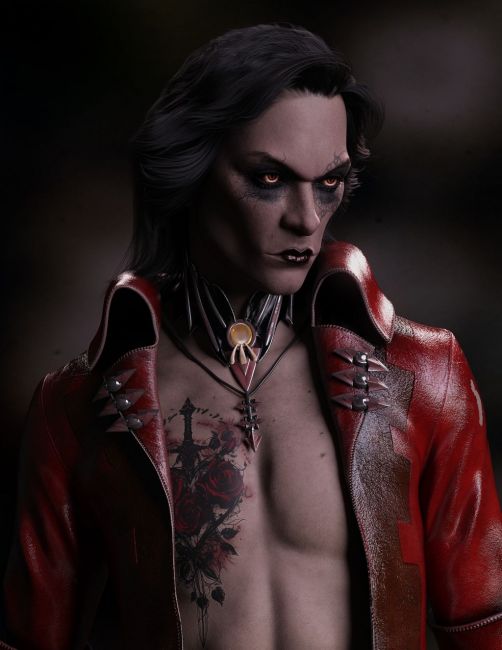 His details are sculpted in HD morphs. He can appear as a striking human, a ruthless vampire, or a supernatural creature covered in veins, scars, tattoos, tears, and smeared makeup.