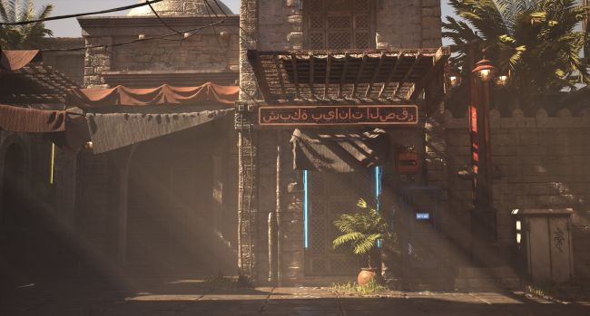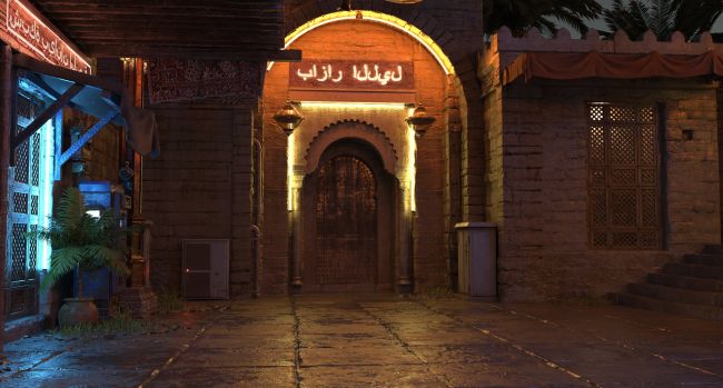 Step into Neon Bazaar, a gritty fusion of Middle-Eastern architecture, neon haze, and dense urban tech. Weathered facades, glowing frames, tangled cables, and atmospheric dust come together to form a hyper textured street world bursting with cinematic energy. Perfect for action, noir, and futuristic storytelling.