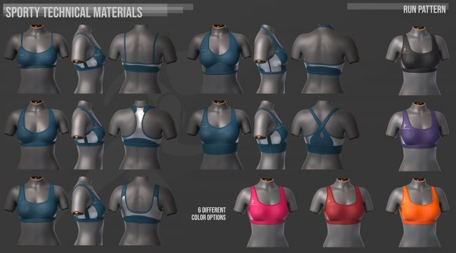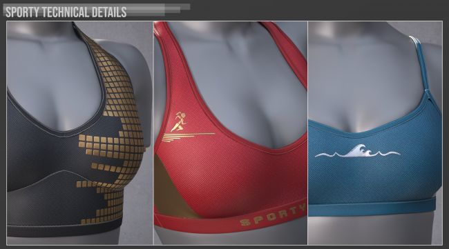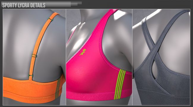 Go beyond cotton with this collection of textures for NG Cotton Bras Base Collection Volume 1. This texture package will add a sporty/athletic feel for your bras from volume 1, which works seamlessly with the Sporty Collection for NG Cotton Panties. It comes in 3 different textile types: