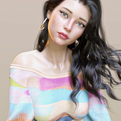 Her skin uses high-resolution 8K texture maps, delivering refined details such as natural tone variation, subtle micro-shading, and realistic surface reflection under Iray lighting. Shaders are carefully tuned to achieve balanced subsurface scattering for natural light diffusion and soft highlights.
