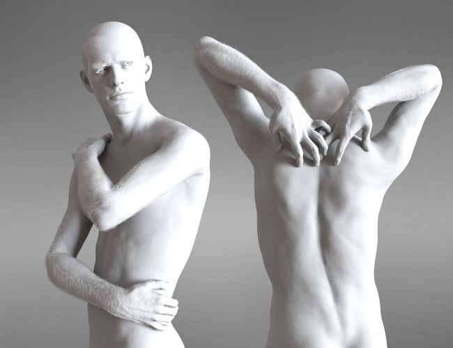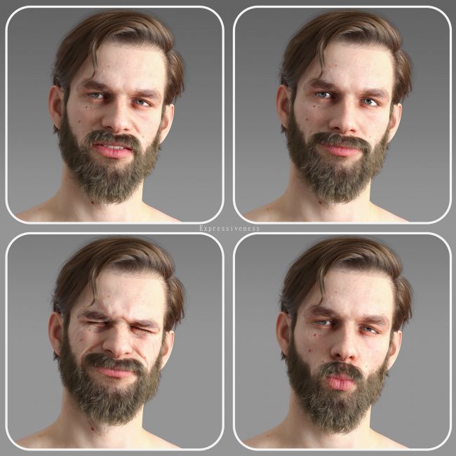 Microdetail HD morphs: highly detailed surface imperfections and wrinkles sculpted at subdivision level 4 support photorealism even in extreme close-up renders.