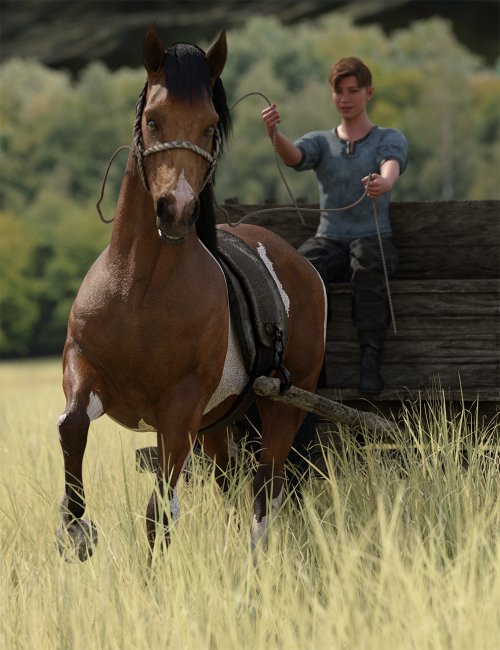 - 05 Full Body Hierarchical Poses for Daz Horse 3 and Rustic Cart