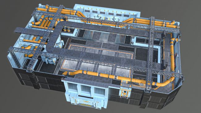 The set includes 93 elements that are made in a single style and can be an addition to 75 corridor props, you can assemble your hangar configuration from a designer.