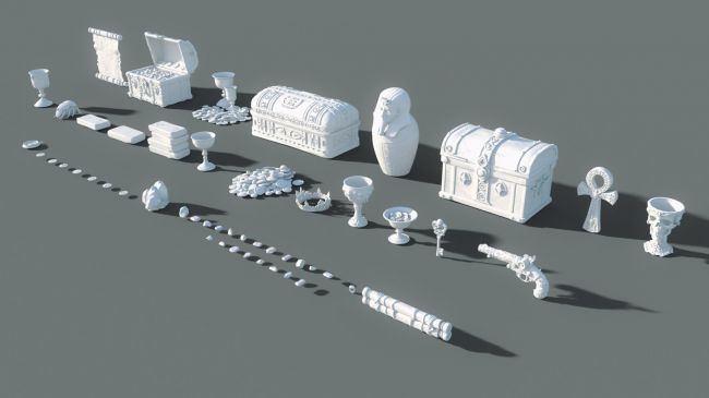 Designed for adventure scenes, fantasy worlds, pirate stories, ancient ruins, or cinematic storytelling, each prop carries a sense of history, mystery, and hard-earned fortune.