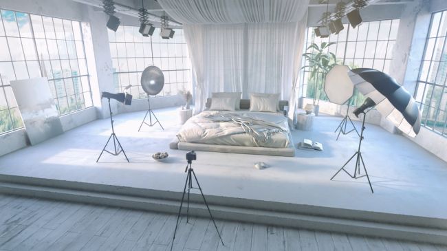 Ideal for fashion photography, intimate portraits, magazine-style scenes, or luxury lifestyle renders, this studio blends minimal design with warmth and softness for refined, modern visuals.