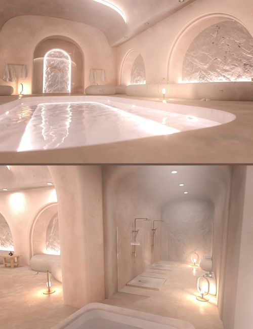 Craft immersive wellness scenes with this luxurious Thermal Suite, complete with a bubbling Jacuzzi and invigorating Cold Plunge Pool. Designed for ultimate relaxation and contrast therapy, this environment blends spa elegance with functional realism - perfect for high-end resorts, retreats, or health-focused renders.