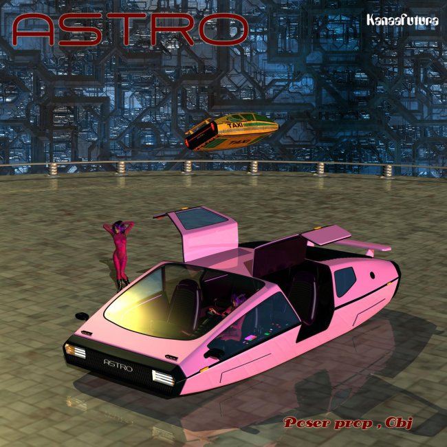 3d model of a fantasy cyberpunk styled flying car, as a jointed Poser prop and also Obj. to use in other programs.