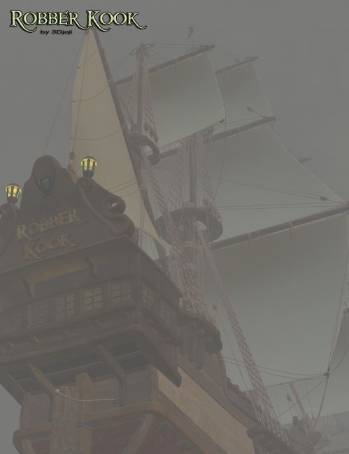 if you are a famous pirate, this little toon Galleon is all you need to travel along the sea. Still in Poser directories Format (but of course run in Daz Studio), it is a 8 guns ship with 10 sails which can be folded or opened and move according the wind. All the 6 gun holes can be opened one by one and the related guns can be moved separately. The flag is wind sensible and the helm is driven by the helm circle. A large captain room is at disposal to put all you want but don't forget to close the door. The right anchor is movable and the name of the boat is defined as a a surface to be cleared if necessary (as well is the stand). Lot of details and two different 3Dlight textures are all you need to enjoy this little pearl.